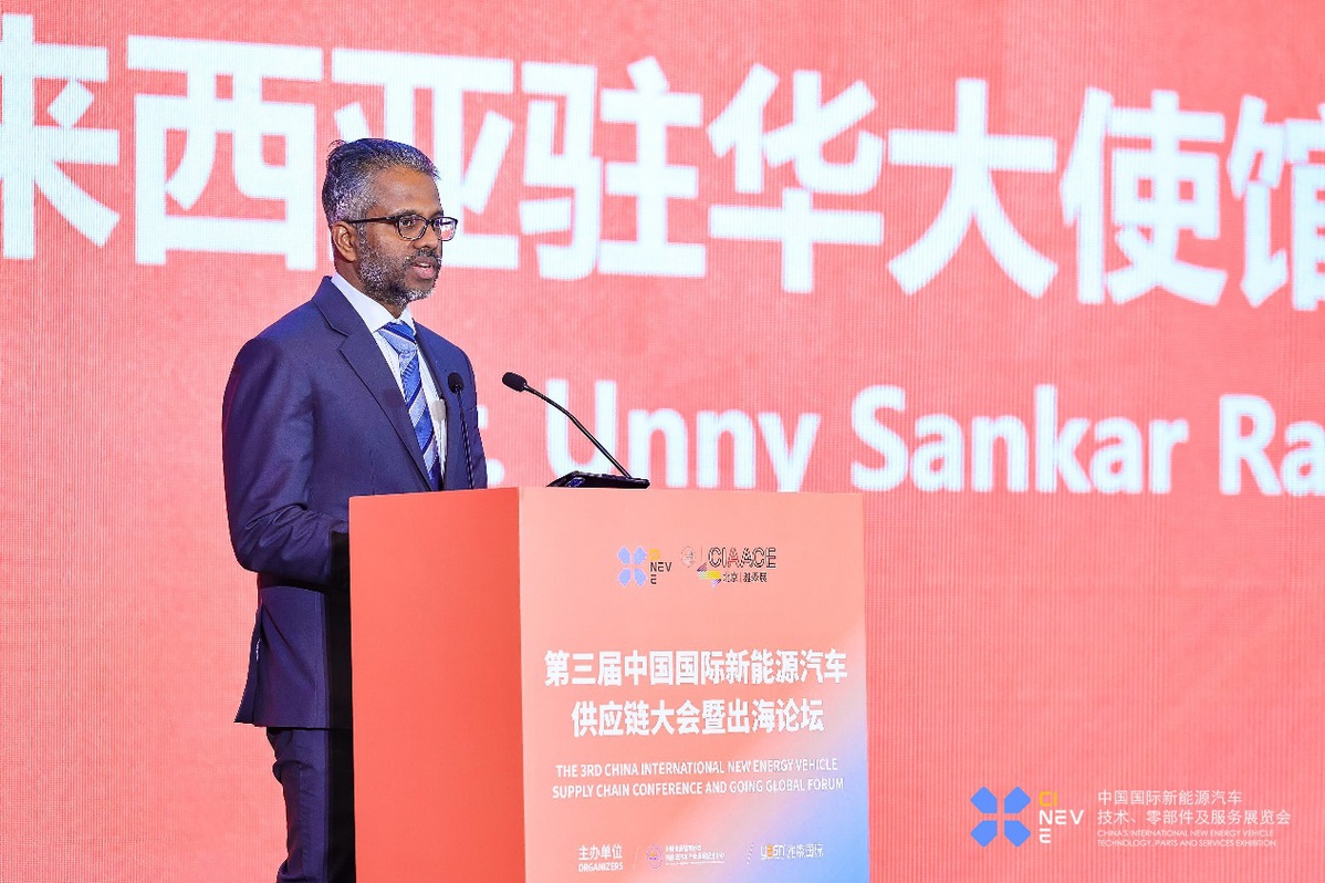 國家信息中心正高級經(jīng)濟(jì)師徐長明先生發(fā)言國際合作展望:共探出海廣闊前景新能源汽車產(chǎn)業(yè)全球化趨勢日益明顯,國際合作與出海發(fā)展成為企業(yè)拓展市場、提升競爭力的重要途徑。本環(huán)節(jié)旨在為國內(nèi)外企業(yè)搭建溝通橋梁,來自7個國家的駐華使節(jié)分享各國新能源汽車產(chǎn)業(yè)的市場機遇與優(yōu)惠政策,為中國企業(yè) “走出去” 提供精準(zhǔn)信息,同時幫助國外企業(yè)尋求合作,促進(jìn)資源共享與技術(shù)交流,攜手開拓全球市場,實現(xiàn)互利共贏,提升中國新能源汽車產(chǎn)業(yè)的國際地位。出海政策:馬來西亞馬來西亞駐華大使館經(jīng)濟(jì)公使Unny Sankar Ravi Sankar先生發(fā)表演講。他高度認(rèn)可中國在新能源汽車行業(yè)的全球領(lǐng)導(dǎo)地位,期望中國能與馬來西亞中小企業(yè)分享技術(shù),共同開發(fā)前沿技術(shù),實現(xiàn)互利共贏。他提到,“一帶一路”