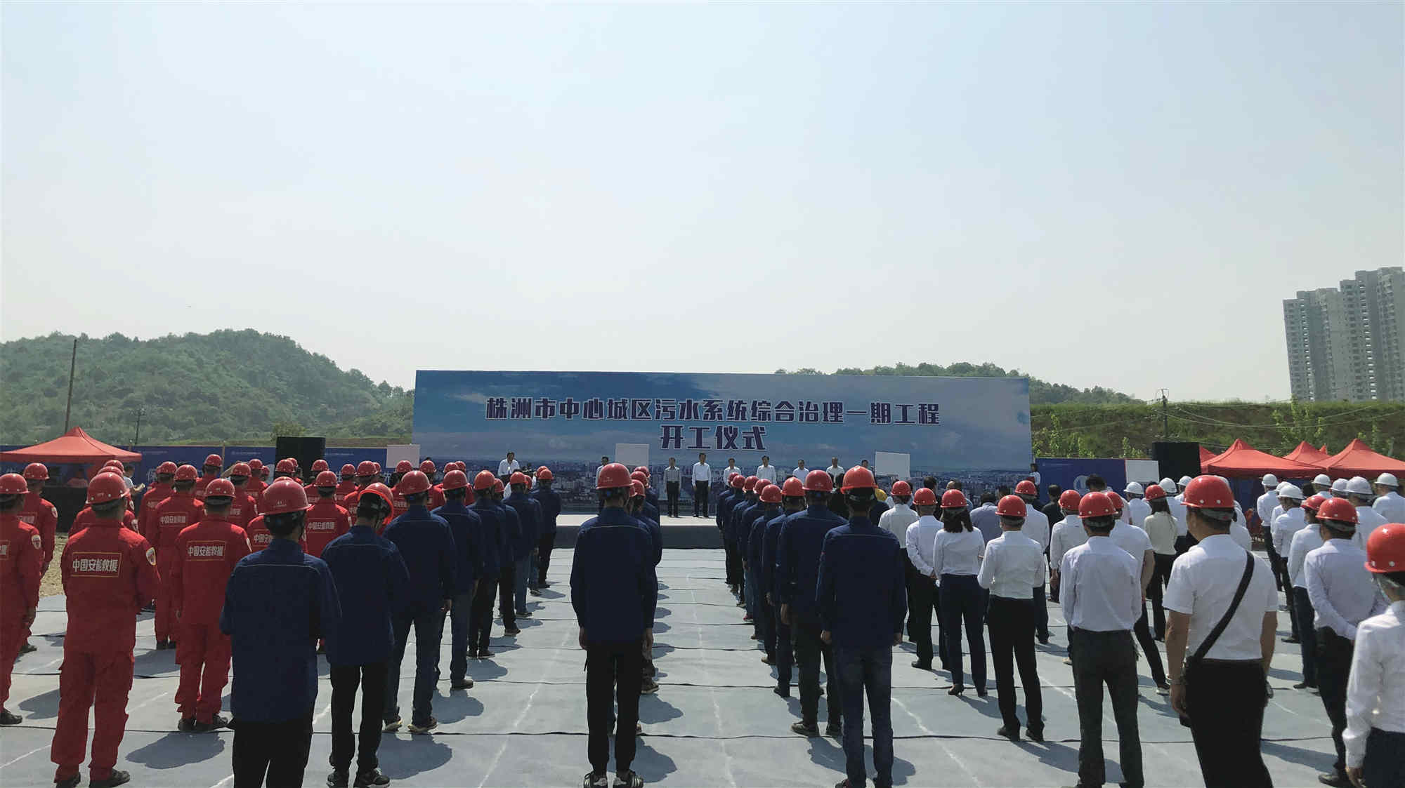 湖南省、株洲市有關(guān)領(lǐng)導(dǎo),長江生態(tài)環(huán)保集團及各施工單位出席開工儀式。開工儀式上,安能一局各類特種裝備,參建人員嚴(yán)謹(jǐn)?shù)淖黠L(fēng)、良好的精神風(fēng)貌,贏得了現(xiàn)場嘉賓的連連駐足和點贊。