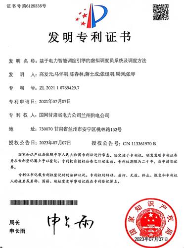 8月1日,國網(wǎng)蘭州供電公司供電服務(wù)指揮中心自主研發(fā)的《基于電力智能調(diào)度引擎的虛擬調(diào)度員系統(tǒng)及調(diào)度方法》榮獲國家知識產(chǎn)權(quán)局頒發(fā)的發(fā)明專利證書。
