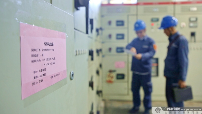 玉林供電局用電檢查人員根據(jù)保供電清單對(duì)場(chǎng)館設(shè)備進(jìn)行全面排查。佘晟 攝
