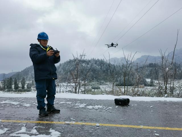 當日,4人快速分頭行動,兩人利用無人機巡檢線路上端,兩人掏出望遠鏡、卷尺、手持覆冰測量儀,對鐵塔以及線路進行測量與觀察。主要觀察高空中的絕緣子串、導地線的覆冰狀況、鐵塔積雪情況。張平說:“特別絕緣子串的觀察很重要,如果它被雪或冰全包裹起來,就會引起線路斷路,影響整個線路的供電。不抓緊時間不行,如果遇上大霧,只能駐守等待霧散去,別人是‘霧里看花’,而我們常常只能霧里守塔。”