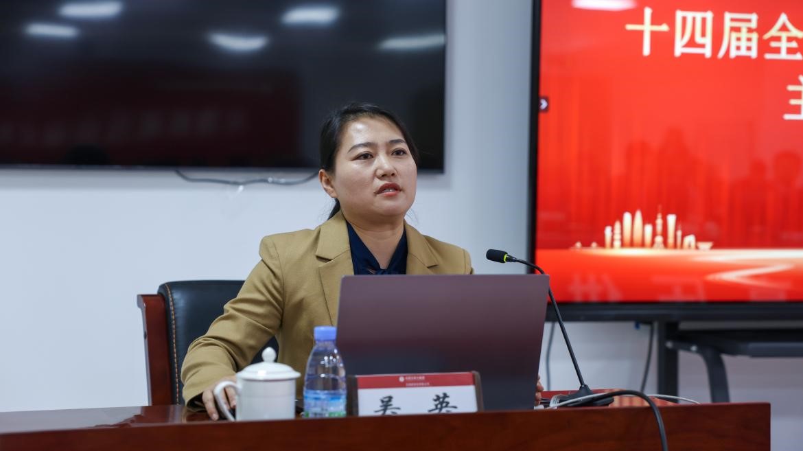 會(huì)上,吳英代表用“接地氣”的方式將熱氣騰騰的兩會(huì)精神“原汁原味”傳遞給全體參會(huì)人員,從大會(huì)基本情況介紹、習(xí)近平總書記重要講話精神、大會(huì)各項(xiàng)議程、內(nèi)蒙古代表團(tuán)的活動(dòng)情況等方面詳細(xì)解讀兩會(huì)精神,著重詮釋“新質(zhì)生產(chǎn)力”這一概念,同時(shí)將她個(gè)人在七年間履職的所見所聞、感悟心得與大家分享。