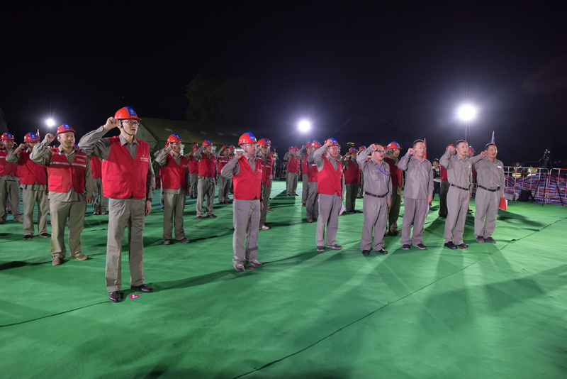 2022年9月15日22時(shí)30分,荊州文旅區(qū)220千伏遷改項(xiàng)目“三跨大會(huì)戰(zhàn)”,“共產(chǎn)黨員突擊隊(duì)”誓師大會(huì)現(xiàn)場人頭攢動(dòng),施工團(tuán)隊(duì)統(tǒng)一著裝,個(gè)個(gè)精神抖擻,排列方陣,整齊劃一,重型施工機(jī)械有序排列,蓄勢(shì)待發(fā)。