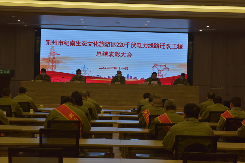 中國(guó)電力網(wǎng)訊 2022年11月16日,湖北荊力電力集團(tuán)生產(chǎn)基地會(huì)議室,氣氛熱烈而莊重。“荊州文旅區(qū)220千伏線路遷改工程總結(jié)表彰大會(huì)”的巨幅標(biāo)語(yǔ)格外醒目。