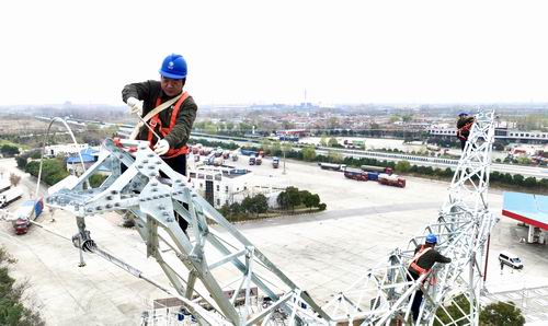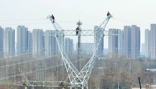 國網商丘供電公司克服寒冷天氣影響,不斷加快電力線路改造,全力服務城市建設。圖為12月4日,該公司對220千伏|華商線進行改造施工。(王輝、趙沖)