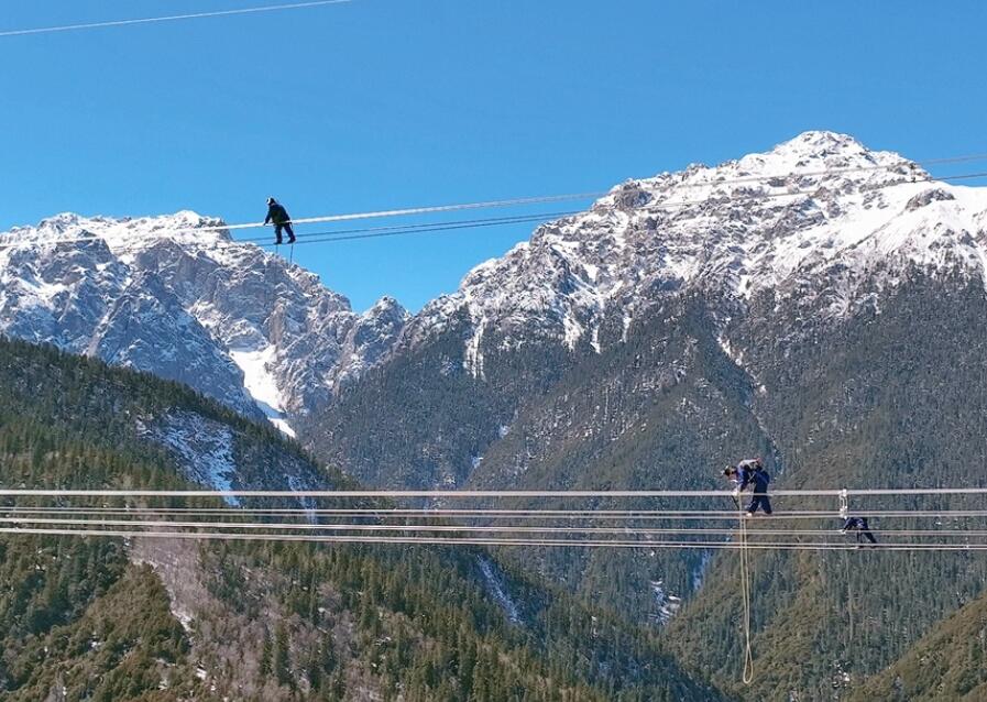 “工程沿線海拔3200至4900米,低溫、缺氧、強輻射,我們克服了物資運輸?shù)壤щy,如期完成了建設(shè)任務(wù)。”該工程施工項目經(jīng)理徐治國介紹,國網(wǎng)四川送變電公司研究制定最短距離架線技術(shù)方案,應(yīng)用自主創(chuàng)新研發(fā)的可視化智能架線系統(tǒng),克服施工具體困難,提高了作業(yè)效率。