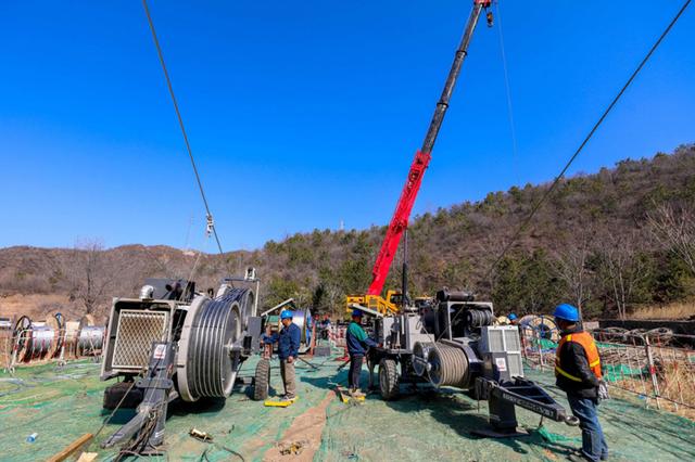 國網(wǎng)北京門頭溝供電公司110千伏清水輸變電工程導(dǎo)地線展放施工現(xiàn)場(張文靜 攝)