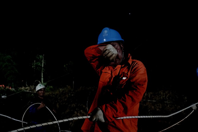 烈日灼空,熱浪翻涌。39℃炙烤,他們攀越百米鐵塔,工裝下汗水聚成溪流;荒野寂寂,夏蟲長鳴,他們安全帽下的曬痕如勛章鐫刻堅守。 鐵塔“生長”的每一寸高度,都銘記著他們擰緊螺栓的力度;銀線延伸的每一米軌跡,都丈量著他們踩著滾燙砂石校準弧垂的精度;設備轟鳴的每一聲回響,都見證著他們裹著濕透工裝晝夜鏖戰(zhàn)的赤誠。