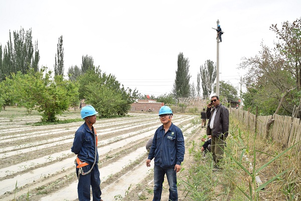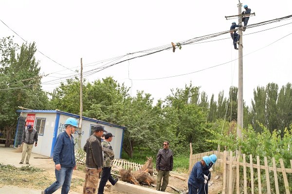 2019年8月15日傍晚,阿克蘇片區(qū)的上空陰暗無比,霎時間狂風(fēng)四起,卷積著烏云籠罩了整座城市。瞬時風(fēng)力達(dá)到9級以上,電力線路迎來了一次巨大的考驗(yàn),惡劣天氣導(dǎo)致沙井子片區(qū)多條路故障停電。陳亮接到指令,立即啟動應(yīng)急搶修預(yù)案,連夜頂著狂風(fēng)暴雨奔赴一線,一切為的只有兩個字:搶修!經(jīng)過長達(dá)15個小時晝夜不歇的高強(qiáng)度連續(xù)作業(yè),沙井子片區(qū)所有故障線路全部恢復(fù)供電!然而在這背后,是陳亮帶領(lǐng)工人們15個小時的奮戰(zhàn)!