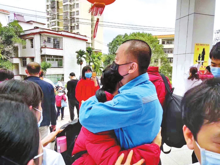 “你要好好的,平安回來(lái),我和孩子們都想你?!?月14日,情人節(jié)這天,海南電網(wǎng)五指山供電局正在值班的曾斡得知妻子胡穎青支援武漢的申請(qǐng)已經(jīng)通過(guò),要立即出發(fā),就請(qǐng)假?gòu)淖冸娬净丶遥瑤е鴥鹤于s到醫(yī)院給妻子送上一個(gè)深情的擁抱。