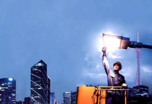 圖為廣州供電局運(yùn)維人員正在高空作業(yè)車上將傳統(tǒng)路燈更換為L(zhǎng)ED節(jié)能燈。