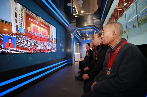 國網(wǎng)山東濱州供電公司組織“光榮在黨50年”老黨員在新時代文明實踐基地收看中國共產(chǎn)黨第二十次全國代表大會開幕會。