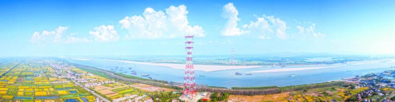 1000千伏南陽—荊門—長沙特高壓工程跨長江施工?! ⌒炜?攝