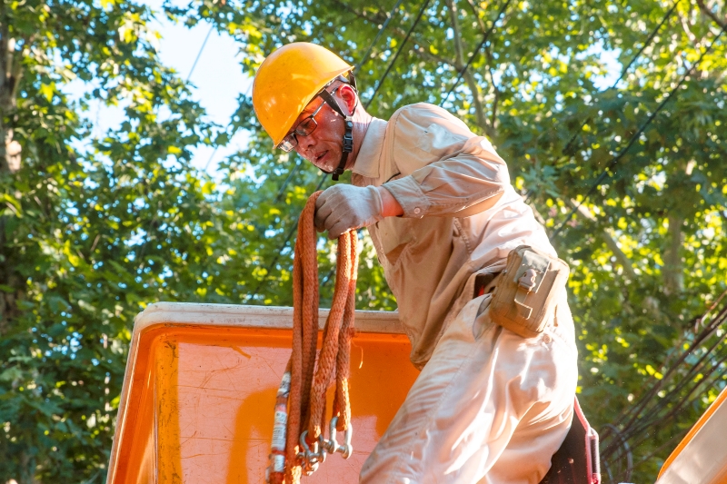 國網(wǎng)安徽滁州供電公司員工在南譙區(qū)水銀山莊開展不停電檢修作業(yè)。