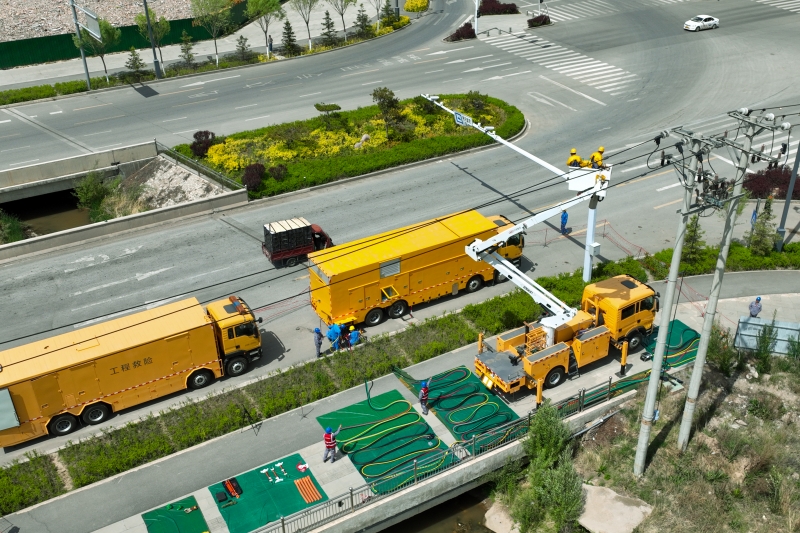 國網(wǎng)青海西寧供電公司員工在10千伏堡十路現(xiàn)場(chǎng)開展電源車并網(wǎng)作業(yè)。