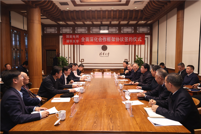 12月27日,國(guó)家電網(wǎng)有限公司董事長(zhǎng)、黨組書記張智剛,總經(jīng)理、黨組副書記龐驍剛與清華大學(xué)黨委書記邱勇,黨委副書記、校長(zhǎng)李路明舉行會(huì)談,全面深化交流合作,推進(jìn)科技創(chuàng)新,深化人才培養(yǎng),推動(dòng)產(chǎn)學(xué)研用深度融合,加快構(gòu)建新型電力系統(tǒng),共同致力新型電力系統(tǒng)基礎(chǔ)理論研究和關(guān)鍵技術(shù)攻關(guān),為能源電力高質(zhì)量發(fā)展作出積極貢獻(xiàn),更好支撐和服務(wù)中國(guó)式現(xiàn)代化。公司副總經(jīng)理、黨組成員陳國(guó)平,清華大學(xué)黨委常委、副校長(zhǎng)曾嶸代表雙方簽署全面深化合作框架協(xié)議。中國(guó)工程院院士、清華大學(xué)電機(jī)系教授韓英鐸參加會(huì)談。