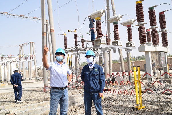 中國電力網(wǎng)訊 4月29日,筆者來到110千伏塔北中變和110千伏哥蘭德變電站改造工程現(xiàn)場時,新疆生產(chǎn)建設兵團第一師電力有限責任公司輸變電工區(qū)甲方代表李會強、李安國正在各自甲代現(xiàn)場認真履行職責,確保改建工程質(zhì)量。