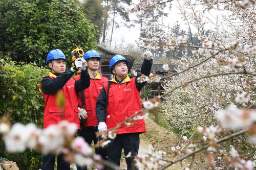 村莊里高矮不一的房屋就錯落在茫茫花海間,村民謝依伯正坐在屋前曬著暖陽,他說,村民主要靠種植梅樹、李樹營收,這些果樹到了結(jié)果期,就會被當?shù)貜S商收購作為蜜餞加工的原材料。“供電公司的工作人員經(jīng)常在附近工作,還會上門幫我們檢查線路,遇到用電難題,一個電話就馬上過來幫忙解決。”謝依伯對供電公司的服務(wù)稱贊道。說話間,共產(chǎn)黨員服務(wù)隊已為謝依伯家的表箱完成安全檢查。王蘇宇說:“我們的片區(qū)經(jīng)理平時都第一時間向村民告知用電信息,發(fā)送惡劣天氣時的安全用電提示,村民有什么問題也是隨時上門服務(wù)到位。”針對高峰村距離縣城遠、村里老人多、辦電不方便等問題,服務(wù)隊還經(jīng)常到此推廣“網(wǎng)上國網(wǎng)APP”,手把手指導(dǎo)老人線上查詢和繳納電費,宣傳安全用電知識,科普節(jié)約用電技巧等,用貼心服務(wù)打造供電公司的溫暖底色。