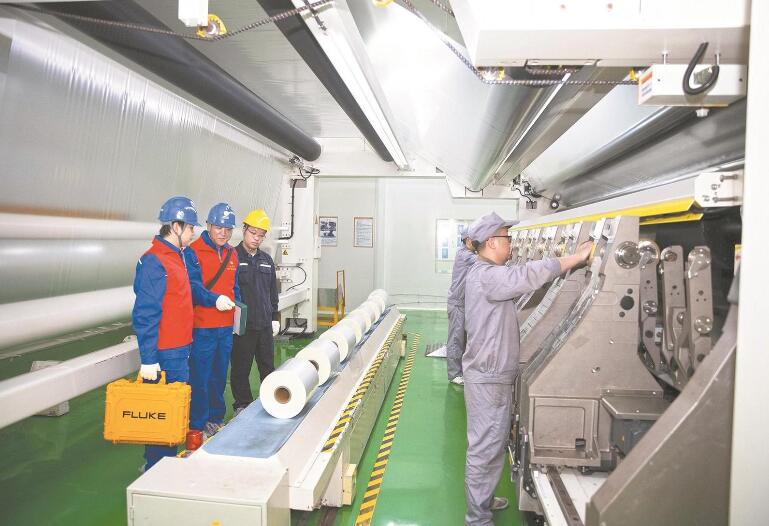 綿陽供電公司員工在四川東材科技集團(tuán)股份有限公司為企業(yè)排查生產(chǎn)線用電安全隱患。田海 攝
