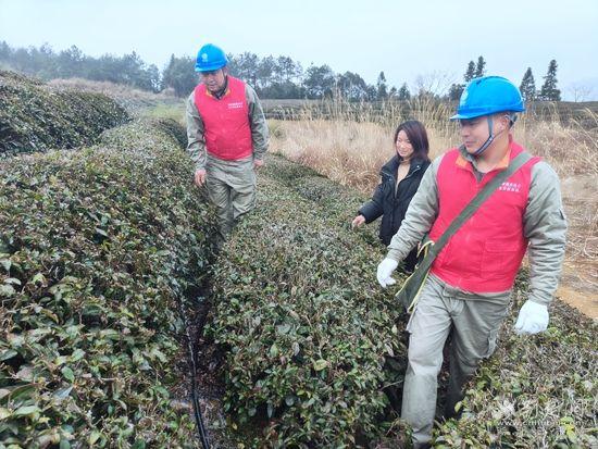 國(guó)網(wǎng)咸寧供電公司肖嶺供電所工作人員走進(jìn)肖嶺鄉(xiāng)泉陂村,對(duì)文定茶葉專業(yè)合作社茶葉基地“水肥一體化灌溉系統(tǒng)”的供電線路及用電設(shè)備進(jìn)行特巡特維,消除安全隱患,全力保障春茶生產(chǎn)用電。