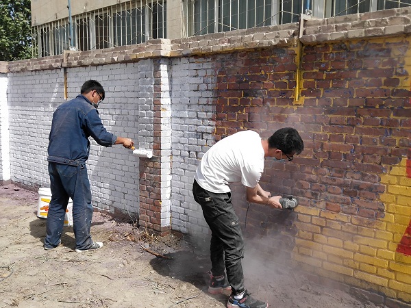 烈日當頭,33℃的高溫絲毫沒有影響到大家干活的熱情。修繕路基的男生們和著水泥、手拿磚塊堆砌出一條筆直的長線;清理墻面的男生也不甘示弱拿著鋼絲刷,拎著裝滿油漆的白桶、滾筒刷來到圍墻外清理墻面;打掃庭院的女孩們拿著手中的勞動工具攀高爬下、忙忙碌碌。到了午休時分,為保質(zhì)保量完成任務,張志龍,作為墻面清理負責人的他,選擇獨自留下,汗水一遍又一遍打濕他身穿的工作服,各色的粉塵混合著白色的油漆落在他的身上。他說:“今天雖然很累很辛苦,但看到俺們自己的勞動成果,能給大家創(chuàng)造好的環(huán)境,我覺得很有意義”。言辭之間,他充滿著自豪和快樂。直到晚上快十點,完成門口的墻面粉刷任務,幾個人才帶著一身的泥土回家吃飯。