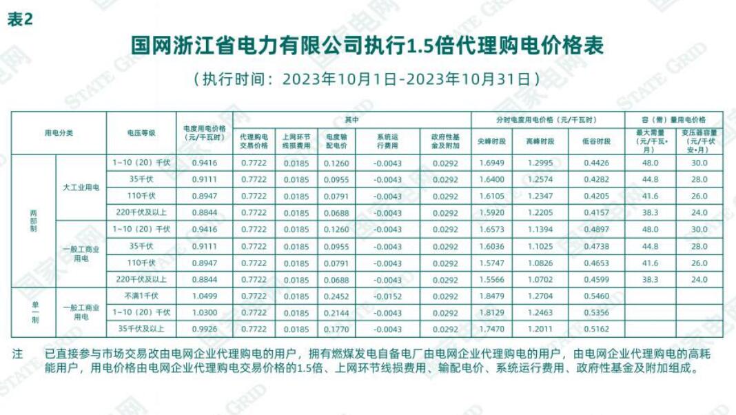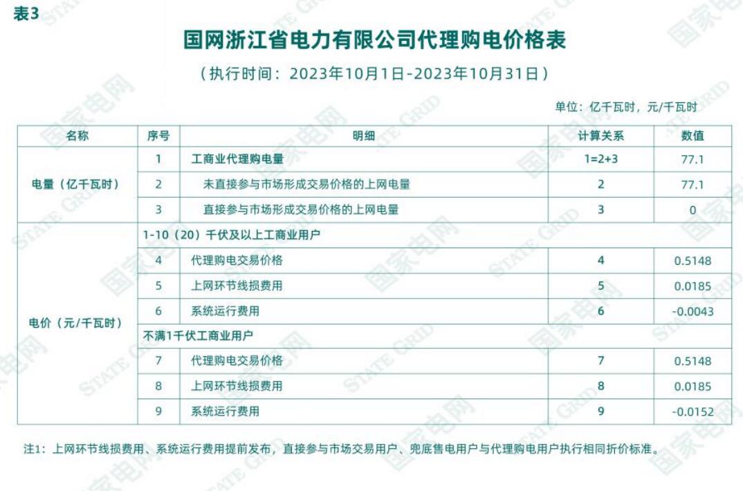國網(wǎng)浙江省電力有限公司關(guān)于2023年10月代理工商業(yè)用戶購電價格的公告