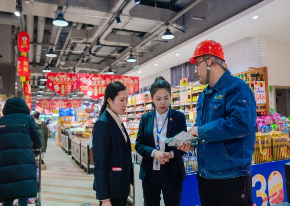 1月29日,國(guó)網(wǎng)四平供電公司專業(yè)人員在進(jìn)前佳超市為工作人員普及用電安全知識(shí)。