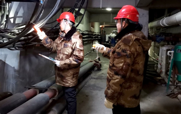 1月30日,國(guó)網(wǎng)白山供電公司員工在白山市福利院檢查地源熱泵安全用電情況。