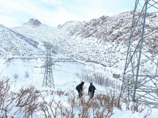 2月17日,國網(wǎng)烏魯木齊供電公司輸電運檢人員巡視監(jiān)測線路覆冰情況。狄開麗 攝