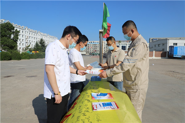 與此同時(shí),長(zhǎng)山廠在廠區(qū)醒目位置懸掛條幅,在電子屏上滾動(dòng)播出宣傳標(biāo)語(yǔ)等形式,廣泛宣傳安全生產(chǎn)的重要性。各單位利用安全活動(dòng)日,組織觀看《生命重于泰山》電視專題片,進(jìn)行“安全生產(chǎn)月”活動(dòng)方案學(xué)習(xí)及宣誓活動(dòng),全體人員面對(duì)安全旗,舉起右手進(jìn)行莊嚴(yán)宣誓,通過(guò)舉行宣誓活動(dòng),營(yíng)造了安全月活動(dòng)氛圍,增強(qiáng)了職工的凝聚力。