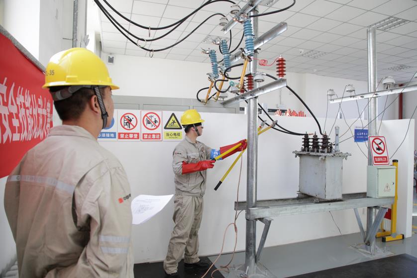 第一項(xiàng)是停送電倒閘操作,評分方式為裁判組打分。參賽選手兩人一組,一人填寫停電操作票、另一人填寫送電操作票,分別擔(dān)任操作人、監(jiān)護(hù)人;安全防護(hù)用品、安全工器具設(shè)置了過期標(biāo)簽,檢驗(yàn)參賽選手是否能正確使用;實(shí)際操作過程中的違章作為扣分項(xiàng)。