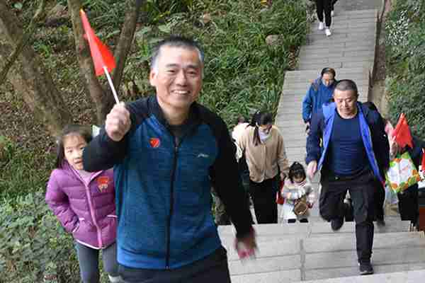 寒風(fēng)凜冽,卻抵擋不住大家火一般的熱情。該公司員工們精神抖擻,神氣昂揚(yáng),你追我趕。家屬隊(duì)伍當(dāng)中,有的父子同行,有的母女同行,有的全家上陣,其樂融融。不時(shí)吸引著路過的人們加入到登高健步走的方陣中來,感受著登高健步走帶來的快樂。
