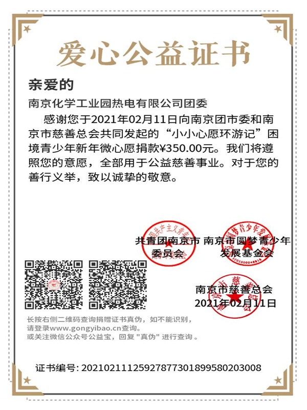 經過前期的調研了解,南京市仍有很多青少年處于困境,他們在新的一年也有屬于自己的小夢想、小心愿,在南京市團市委、南京市民政局、南京市希望工程辦公室的牽頭主辦下,“2020-2021年暖冬行動暨小小心愿環(huán)游記”已拉開帷幕。公司團委創(chuàng)新工作方法,用義賣取代傳統(tǒng)的捐款,讓大家在收獲新春喜悅的同時,也能給需要幫助的人傳遞溫暖,福氣加倍。