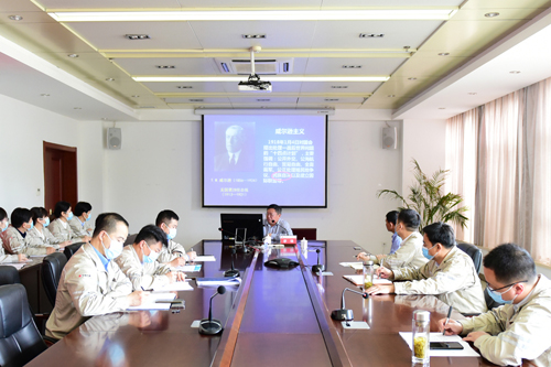 此次宣講嚴格落實常態(tài)化疫情防控措施,通過線上連線設(shè)置多個分會場,廠領(lǐng)導(dǎo)、各單位黨政負責(zé)人、黨員代表等參加專題輔導(dǎo)?;幢笔形h校校委委員、黨史副教授廖鋒講授《探索奮斗發(fā)展——百年黨史的回顧與啟迪》專題黨課,詳細解讀習(xí)近平總書記關(guān)于黨的歷史的重要論述,深入闡述中國共產(chǎn)黨百年奮斗的光輝歷程和歷史經(jīng)驗,全面回顧我黨百年來的探索、奮斗和發(fā)展歷程。民間藝術(shù)家田興超現(xiàn)場表演張力十足、高亢婉轉(zhuǎn)的淮北大鼓《淮海戰(zhàn)役推車情》,熱情謳歌革命戰(zhàn)爭年代淮海大地上的人民群眾,用“小推車”將星星火種推向大江南北的紅色故事。
