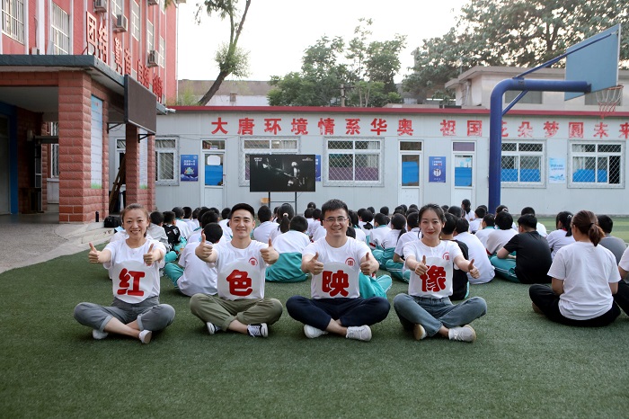 紅色觀影感懷。大唐環(huán)境為華奧學(xué)校捐贈影音播放器材,由該公司志愿者組建“紅色映像”放映隊,精選《小兵張嘎》《地道戰(zhàn)》等經(jīng)典紅色電影,課后傍晚在學(xué)校的操場上,為在校住宿的學(xué)生播放露天電影。在觀影現(xiàn)場,學(xué)生們?nèi)褙炞?、目不轉(zhuǎn)睛地看著大屏幕,時而嚴(yán)肅緊張,時而默默落淚,深深被電影中跌宕起伏的英雄故事所震撼和吸引。放映結(jié)束后,孩子們對電影情節(jié)展開了熱烈地討論,在感受露天觀影快樂的同時,將愛黨愛國教育的種子深深植入孩子們心田,他們紛紛表示,要珍惜來之不易的美好生活,更加努力學(xué)習(xí),回報祖國、回報社會。