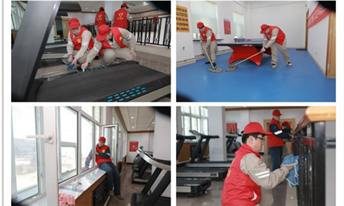青年志愿者統(tǒng)一身穿紅色志愿者馬甲,發(fā)揚不怕臟不怕累的精神,拿起掃把、拖布、抹布等工具,對活動中心的臺球室、乒乓球室、閱覽室、健身區(qū)域進行衛(wèi)生整治,做到環(huán)境衛(wèi)生清理不留死角,讓其變得更加干凈、整潔,部分志愿者還對健身設備添加潤滑油脂進行器材保養(yǎng),增加使用壽命?;顒蝇F(xiàn)場處處充斥著志愿者們忙碌的身影,大家分工協(xié)作,干勁十足,通過共同努力,活動中心環(huán)境煥然一新。