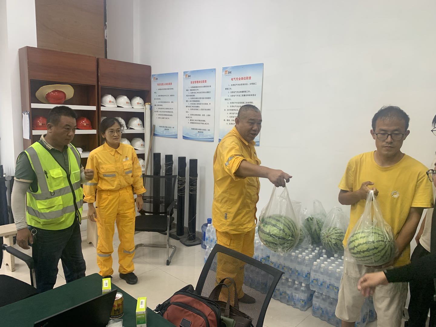 黨支部成員攜帶著精心準(zhǔn)備的清涼物資,諸如鹽汽水、水果以及防暑降溫藥品,逐一將物資送到了清江浦每一位施工單位人員的手中。物資雖然微不足道,但卻表達(dá)了黨組織對一線工作人員的誠摯問候和關(guān)心。