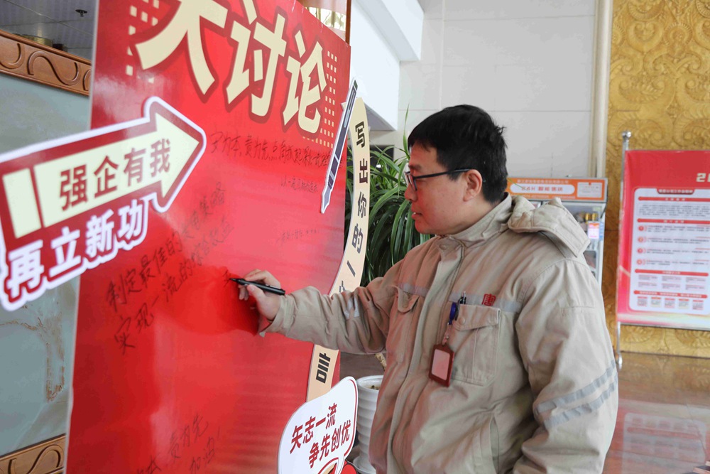 打卡,不僅是對目標(biāo)的記錄,更是對自我成長的見證;誓言,不僅是對未來的期許,更是對責(zé)任的擔(dān)當(dāng)?;顒蝇F(xiàn)場,職工們依次有序地走向留言板,紛紛在展板上“落筆為誓”,一筆一劃地寫出自己的一流誓言,表達(dá)著自己誓要“矢志一流爭先創(chuàng)優(yōu) 強(qiáng)企有我再立新功”的堅定決心。“制定最佳的發(fā)電策略,實(shí)現(xiàn)一流的綜合效益”“建設(shè)一流的供應(yīng)鏈,筑牢企業(yè)成本優(yōu)勢”“深挖設(shè)備潛能,爭創(chuàng)一流能耗水平”“安為本,責(zé)為先,點(diǎn)滴抓起深化一流安全管理”……一句句熱血的誓言充盈著整張展板,他們筆下的每一個字都充滿了力量和奮斗的光芒,激勵著每一位職工把承諾深深鐫刻在心里,并轉(zhuǎn)化為實(shí)際行動。