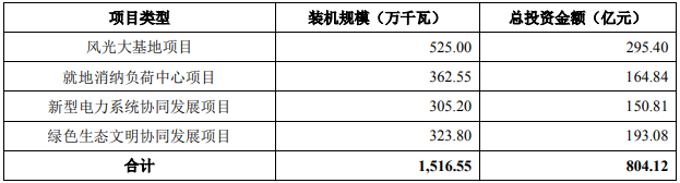 其中,風力發(fā)電、 太陽能發(fā)電項目建設(shè)擬使用募集資金約 210 億元,補充流動資金擬使用募集資金約 90 億元,公司風力發(fā)電、太陽能發(fā)電項目建設(shè)具體分布情況如下: