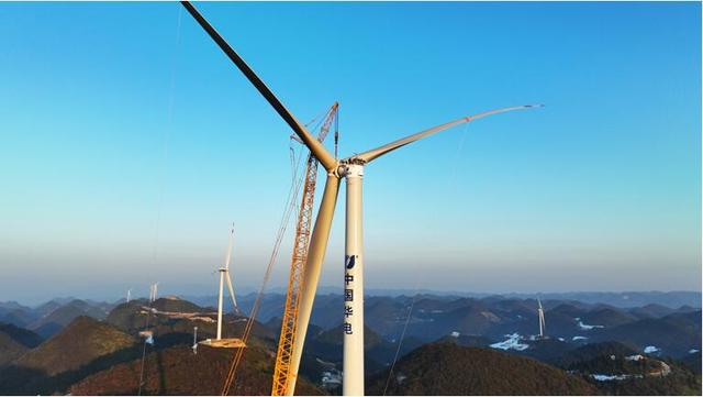 華電奉節(jié)龍家坪項目風機葉片吊裝 華電重慶公司供圖