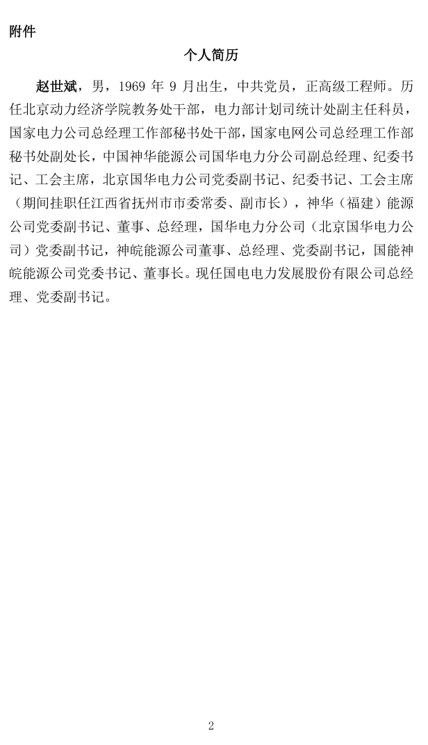 國電電力發(fā)展股份有限公司(以下簡稱“國電電力”)董事會同意聘任趙世斌為公司總經(jīng)理。