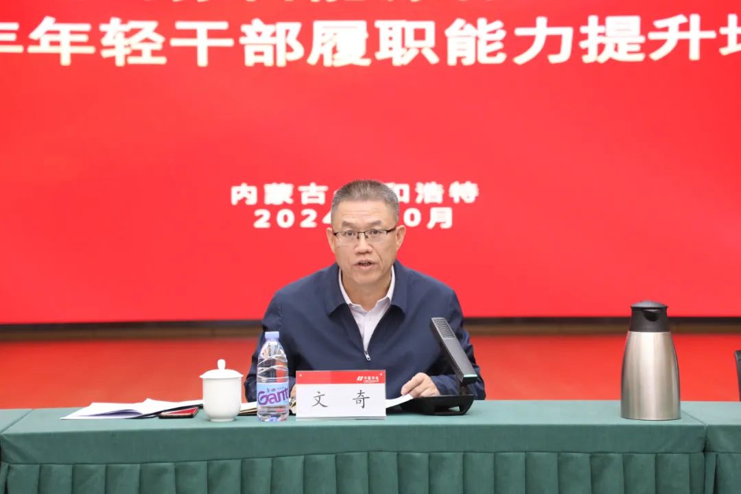 10月22日至24日,內(nèi)蒙古公司舉辦2024年年輕干部履職能力提升培訓班,公司本部、各基層企業(yè)中層干部和業(yè)務骨干共47人參加培訓。內(nèi)蒙古公司黨委副書記、董事、總經(jīng)理文奇參加結(jié)業(yè)儀式并講話。