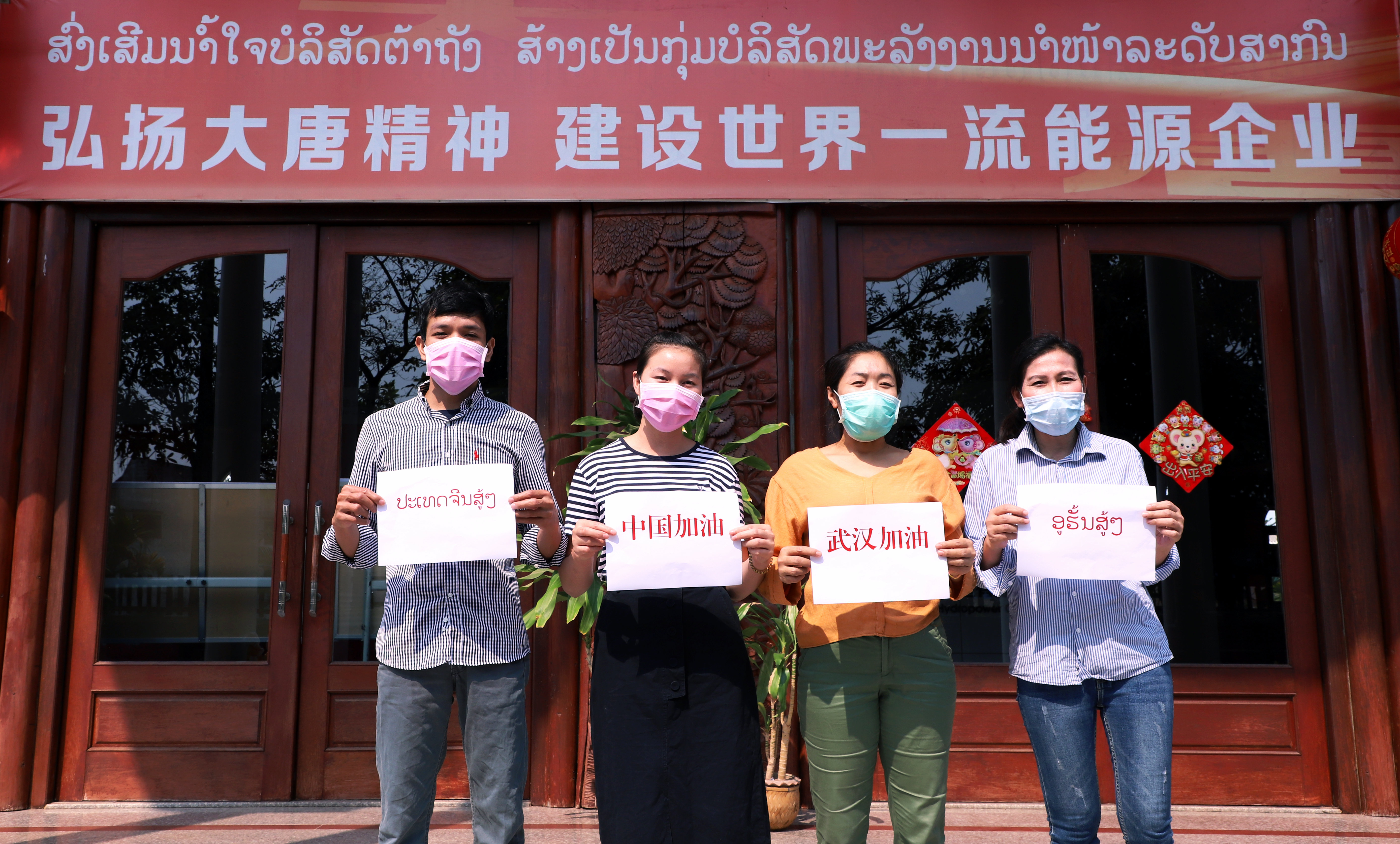 大唐老撾北本薩拉康公司老籍職工為武漢加油,為中國加油!(劉強/攝)