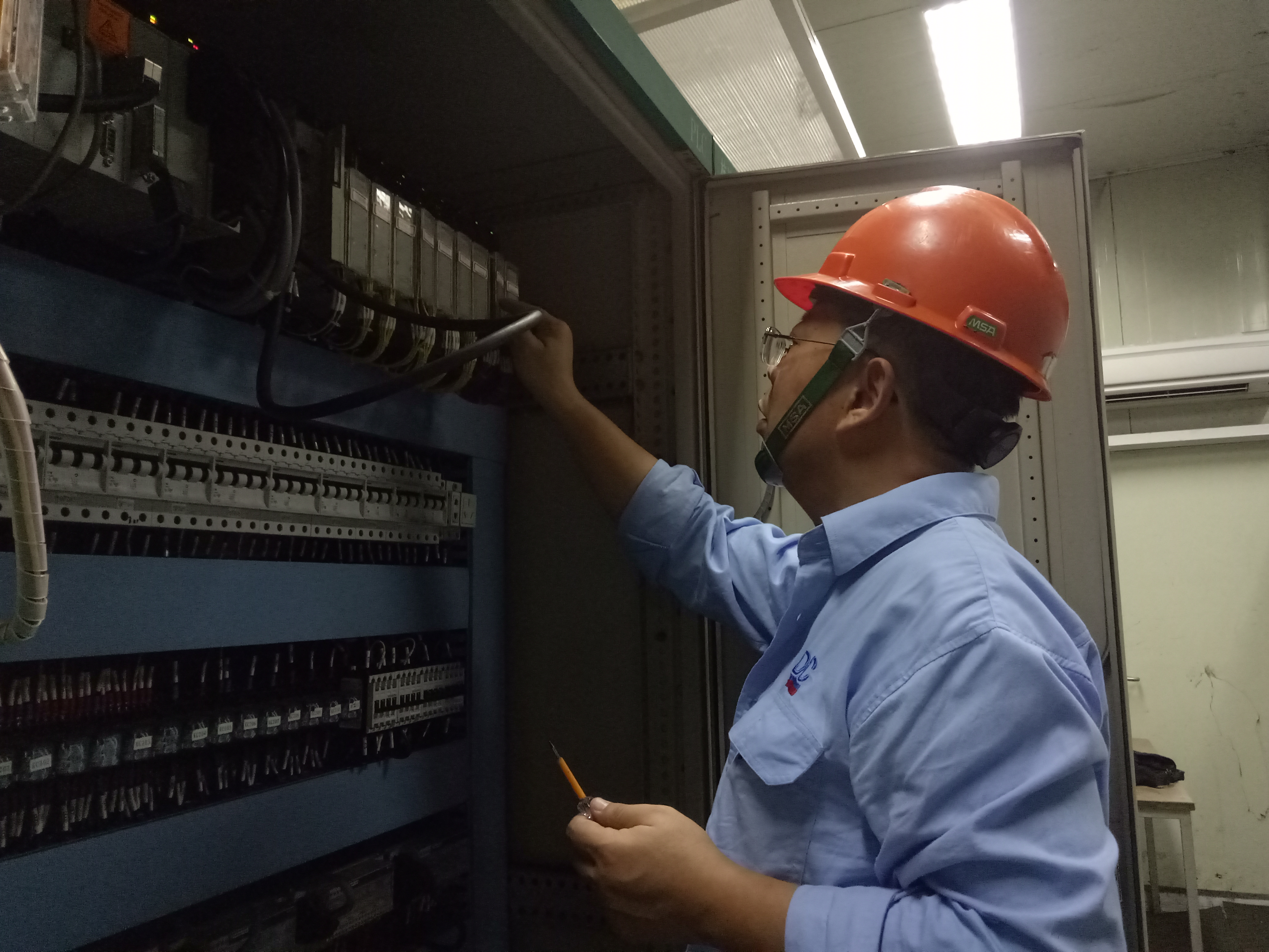 印尼芝拉扎項目部職工檢修設(shè)備(王永平/攝)
