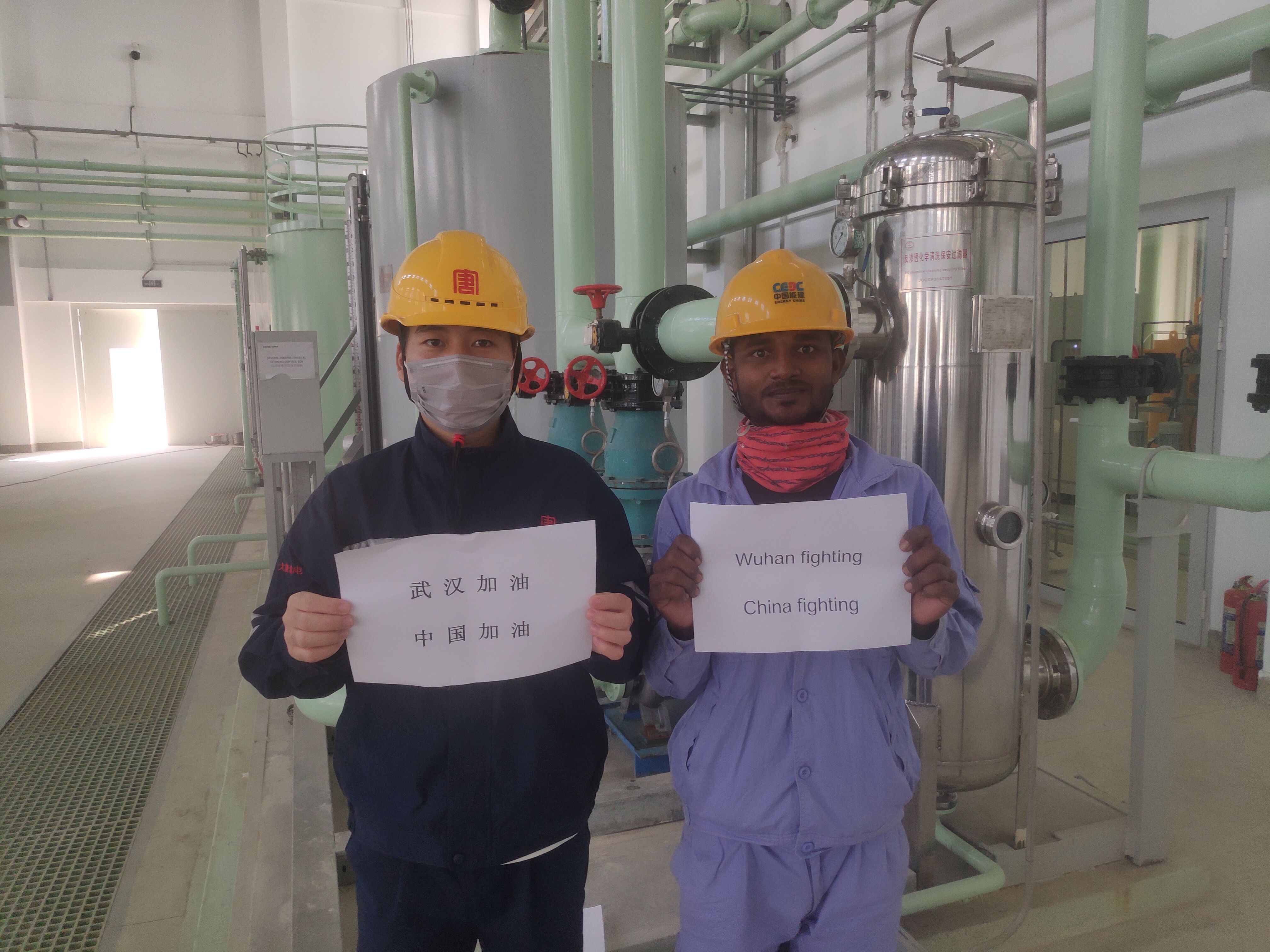 在大唐海外技術(shù)公司承擔(dān)運維工作的孟加拉帕亞拉電站,中外職工為中國加油、為武漢加油?。鐒t廷 金洪飛/攝)