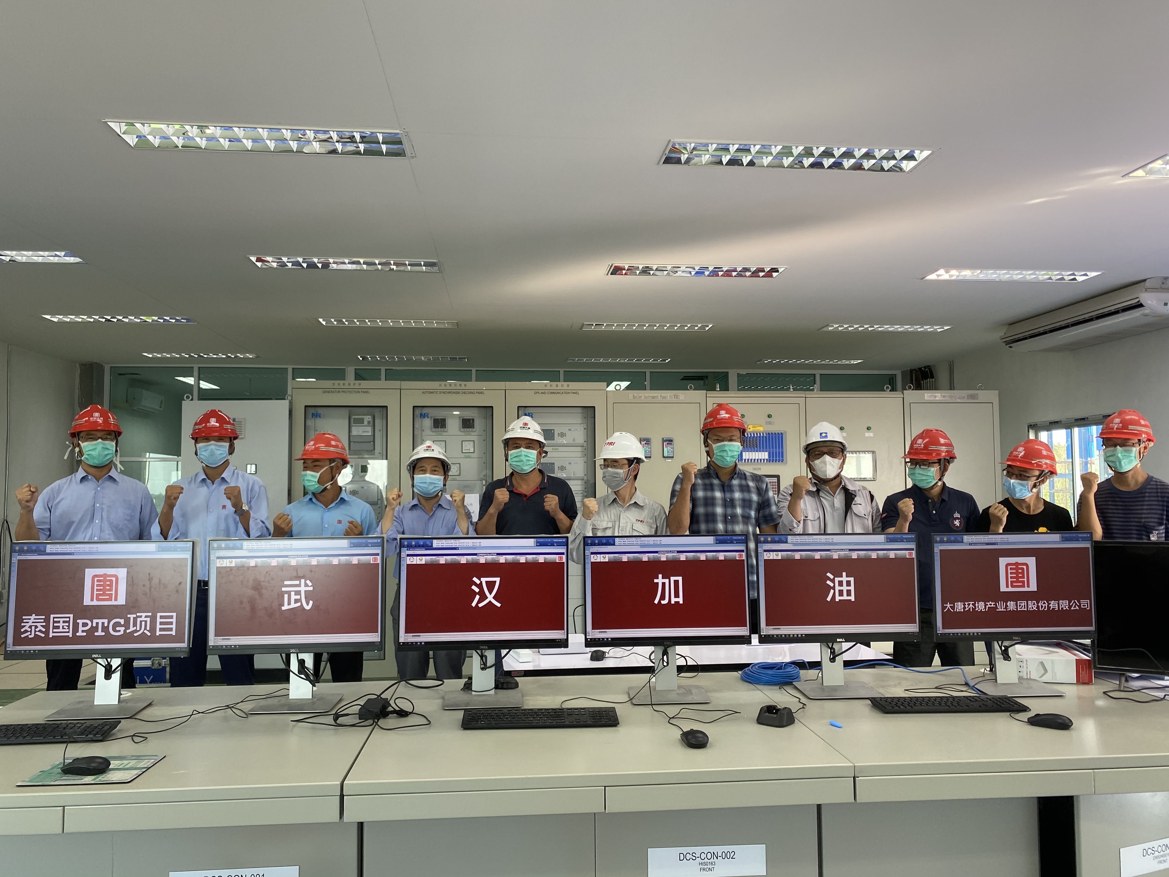 正在建設(shè)中的大唐環(huán)境產(chǎn)業(yè)集團泰國ptg項目的中泰職工表達共同心愿。(胡濱/攝)