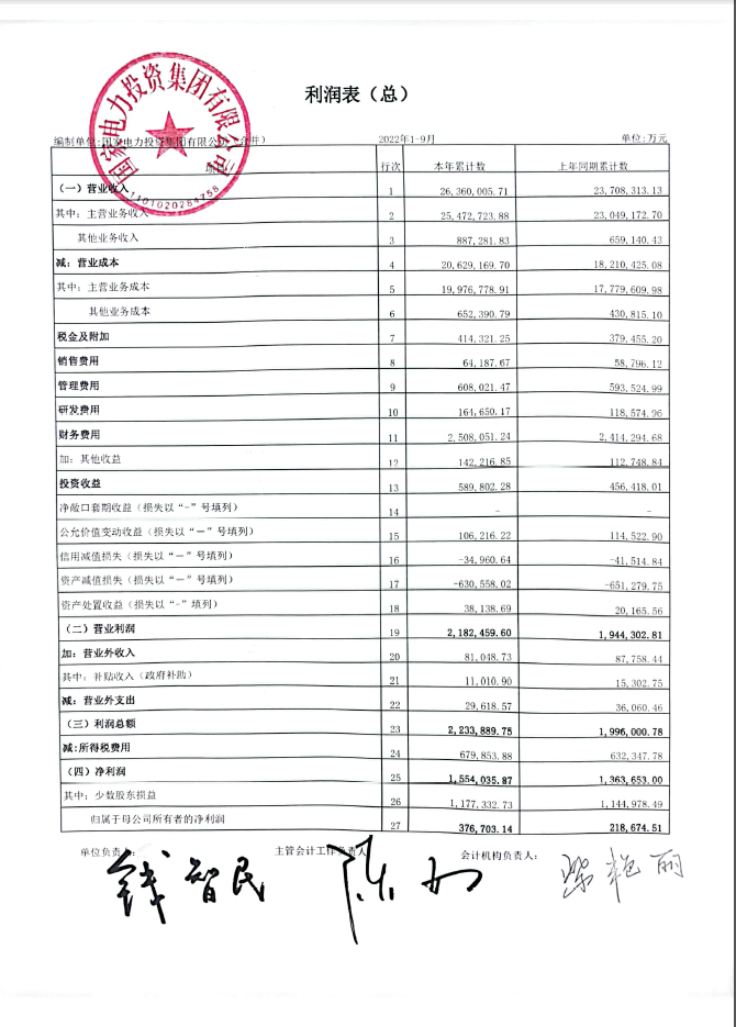 國家電投集團(tuán)2022年三季財務(wù)報表