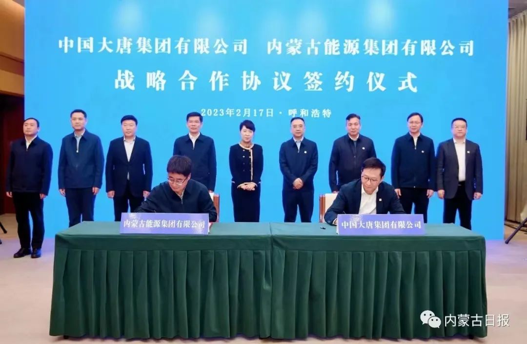 會(huì)見前,中國(guó)大唐集團(tuán)有限公司分別與內(nèi)蒙古自治區(qū)人民政府、內(nèi)蒙古能源集團(tuán)有限公司簽署戰(zhàn)略合作協(xié)議。王莉霞和鄒磊出席儀式并見證戰(zhàn)略合作協(xié)議簽約,共同為大唐內(nèi)蒙古能源開發(fā)有限公司揭牌。