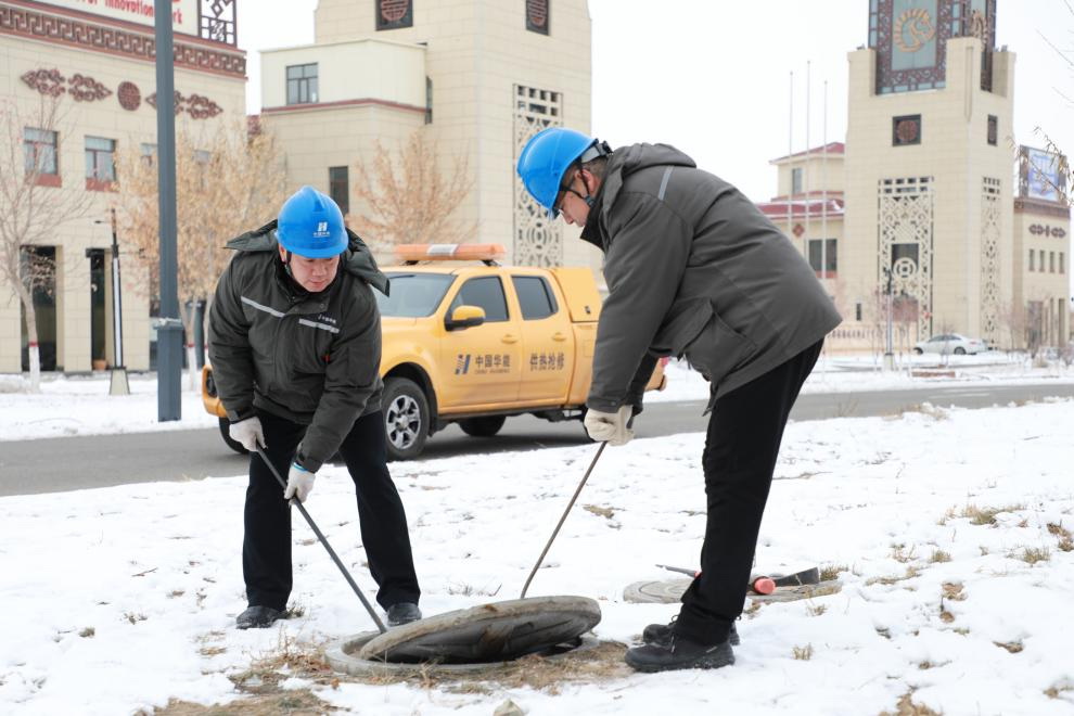 北方公司積極應(yīng)對(duì)寒潮天氣,工作人員正在排查供熱管網(wǎng)安全。