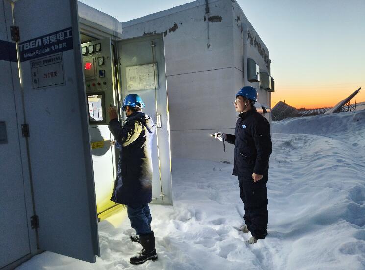 在西北部地區(qū),新疆伊犁地區(qū)日前遭遇連續(xù)降雪,華能伊犁光伏電站地處山區(qū),現(xiàn)場積雪最深處達50公分。場站立即啟動防寒防凍應急預案,重點對匯流箱、箱變、逆變器、光伏板凝凍情況等進行仔細檢查,增加巡檢次數(shù)和動態(tài)跟蹤;及時清除組件積雪,加強應急值班管理,持續(xù)做好運行監(jiān)控分析和重點設備專項檢查工作,確保電力生產(chǎn)設備始終處于最佳運行狀態(tài),保障關鍵時刻設備安全穩(wěn)定供電。